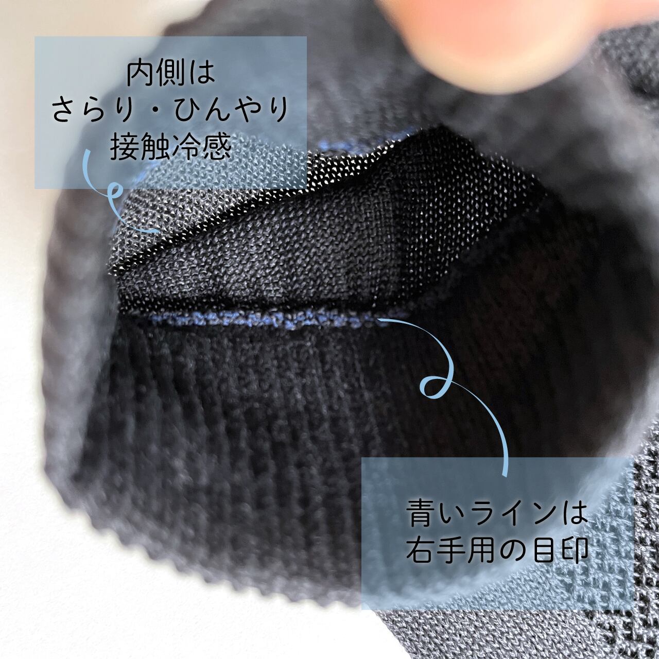 肌に接触する内側には、ポリエチレン糸を使用することで
